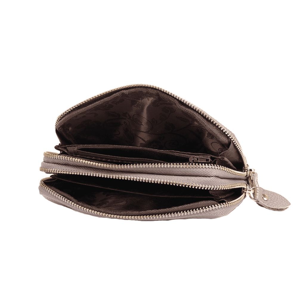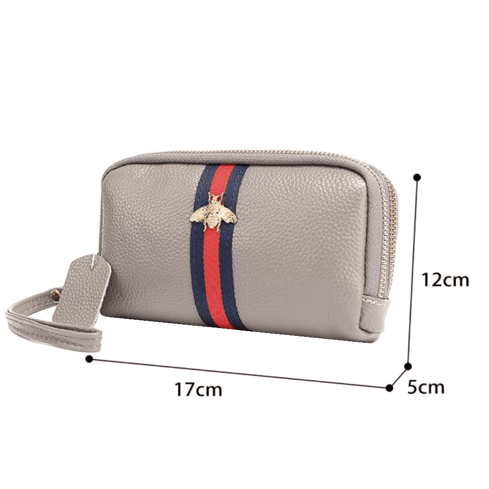 Bumble Bee Design Double Zipped Leather Purse In Pale Pink