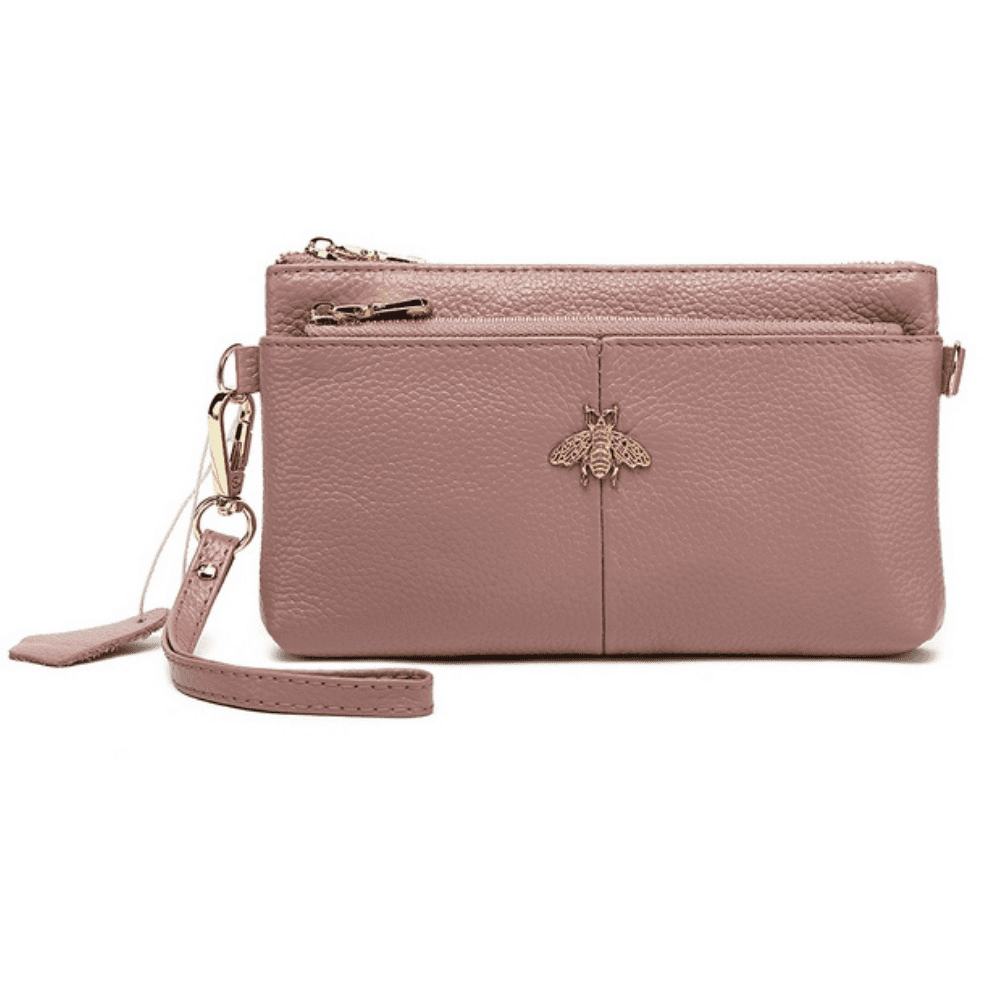 Pale Pink Leather Purse with Bumble Bee Embellishments